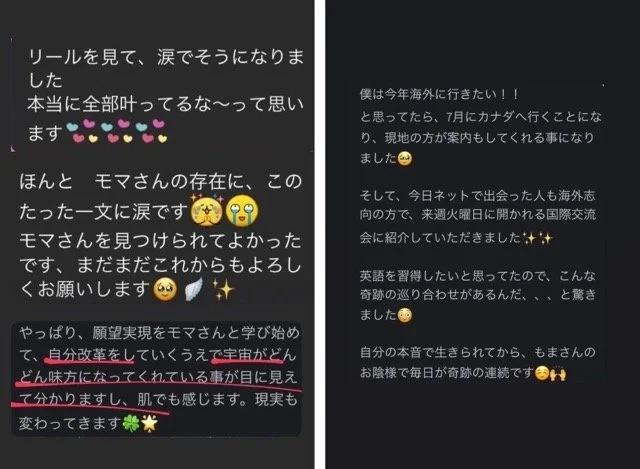 だからこそ、私がお渡しする地図をその通り進んでくれたら、妄想実現QUEENになることは確実🗺✨私の講座生もそれを実証してくれてるから、最後に彼・彼女たちのコメントも載せておくね👇